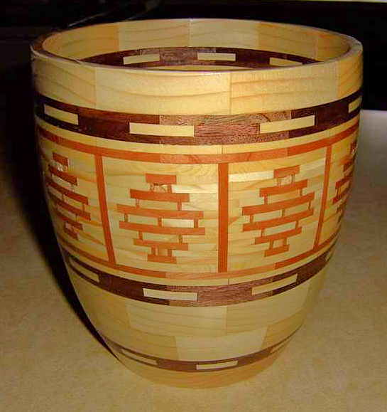 Gordon was one of two people I’ve known who could visualize in three dimensions, making his complicated design ideas much easier to create. To him much of segmented wood turning was just math problems, which he loved and excelled at solving. While the artistry aspect was challenging in the beginning, he worked hard to expand and refine his art. What he most appreciated was how the grain in each wood species could make his design elements stand out, and strived to utilize that in every piece he created. Gordon never copied another’s bowl, he used them for inspiration and tried to improve on a few, usually with his own twist. His achilles heal was covers or lids, anything that sealed the top. Due to the various characteristics of wood, and the humidity, it is very difficult to prevent those lids or covers from warping and cracking, yet he persisted and succeeded many times.